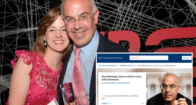 Posted in NY Post Atlantic writer David Brooks — who wed much younger assistant after ditching wife — mocked for planned ‘love’ advice talk at Yale April 20, 2026 David Brooks, who recently jumped to The Atlantic, is slated to speak Monday at Yale University in a talk billed as a guide to romance. https://nypost.com/2026/04/20/media/atlantic-writer-david-brooks-who-wed-much-younger-assistant-after-ditching-wife-mocked-for-planned-love-advice-talk-at-yale/