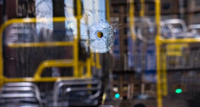 Police said one bullet was found inside the bus, with the other lodged in the victim’s shoulder.
