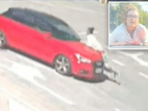 Shocking moment Mercedes driver mows down cyclist then speeds away