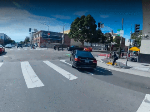 The clip shows a black Mercedes pulling into traffic before abruptly turning into the path of a cyclist traveling in a designated bike lane. https://nypost.com/2026/04/16/us-news/sfc-mercedes-driver-mows-down-cyclist-then-speeds-away/