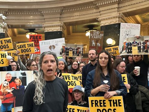 Animal welfare protesters converge on Wisconsin governor’s office seeking release of beagles