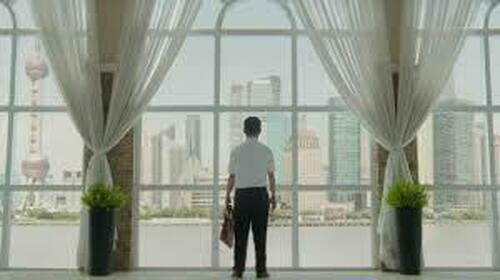 “As I rise within the party, I watch those above me get discarded like worn-out shoes, one after another. But now, I realize that my fate is just as precarious as theirs,” the narrator says, as a Chinese official and his wife walk into a lavish dinner with Chinese government agents tailing him.