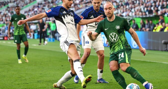 Christian Eriksen anotó de penal para el Wolfsburg, pero su equipo recibió dos goles y el Hamburgo convirtió ambos para colocarse nueve puntos por encima del conjunto local y en buena posición para asegurar la permanencia en su primera temporada de regreso a la máxima división.