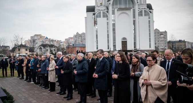 KYIV, Ukraine (AP) — European foreign ministers visited Ukraine on Tuesday to mark the fourth anniversary of atrocities committed in a town near Kyiv by Russia’s invading forces.