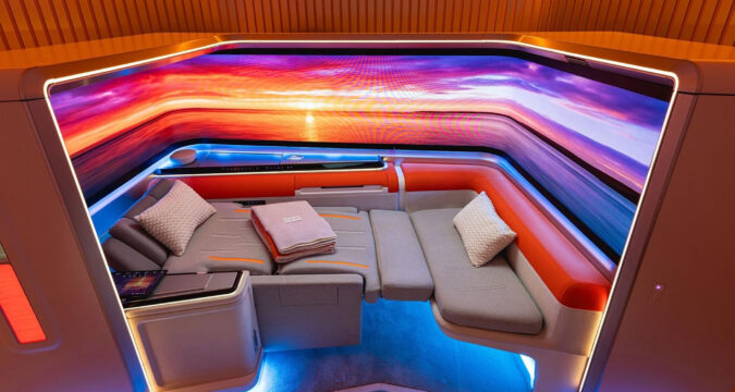 Immersive wrap-around screens and mood-matching displays are the future of first-class plane travel