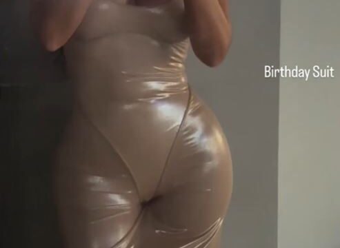 KIM Kardashian appeared to copy Bianca Censori’s style in a plunging skin-tight dress, with fans ‘confused’ over the odd birthday look.