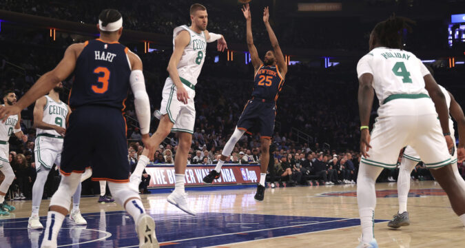 Porzingis poured in 34 points on 11-of-19 shooting, drilling 8-of-13 from behind the arc — the most threes he’s ever hit in a game against the Knicks — and hit the dagger from near the logo in overtime to give Boston a 115-112 lead with under 40 seconds to go. The Celtics escaped with a 119-117 win, their fourth over New York this season to complete the sweep.