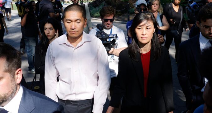FILE – Former New York Governor Kathy Hochul aide Linda Sun and her husband, Christopher Hu, not in photo, leave Brooklyn Federal Court after their arraignment, Sept. 3, 2024, in New York. (AP Photo/Corey Sipkin, File)