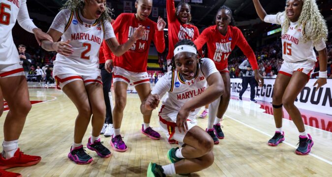 It almost happened this year, but with Maryland up three in the second overtime, Diana Collins missed a 3-pointer for the Crimson Tide (24-9). The ball went out of bounds to Alabama with 1.8 seconds left, but Te-Biasu broke up the inbound pass — which was headed in Barker’s direction — to seal the game.