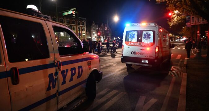 Police are pictured at the scene of a protest involving Pro-Israel and Pro-Palestinian protesters at Eastern Pkwy. and Kingston Ave. in Crown Heights, Brooklyn on Thursday, April 24, 2025. (Photo by Kyle Mazza / NurPhoto / Shutterstock)