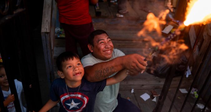 July 4: Julio Abrego lights a firework with his son, Brian Abrego, 5, during the 4th of July holiday in Chicago’s Pilsen neighborhood. (Vincent Alban/Chicago Tribune)