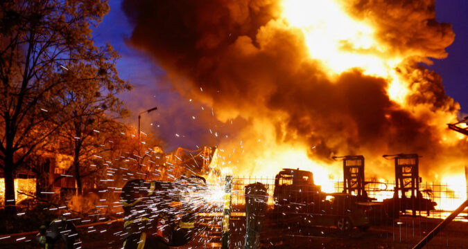Russia hammered civilian areas of Ukraine with hundreds of drones and dozens of missiles overnight, killing at least 16 people and injuring more than 80 others in its biggest aerial barrage in almost two weeks, officials said Thursday.