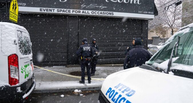 Six teenagers were shot and wounded at a birthday party outside of the Champagne Room Events Space at 2929 Atlantic Avenue in Brooklyn on Sunday December 14, 2025. (Theodore Parisienne / New York Daily News)