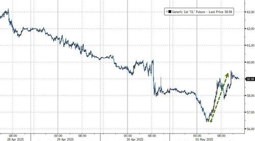“Any Country or person who buys ANY AMOUNT of OIL or PETROCHEMICALS from Iran will be subject to, immediately, Secondary Sanctions,” Trump stated in the post. Oil had quickly jumped 2% on the mid-afternoon announcement.