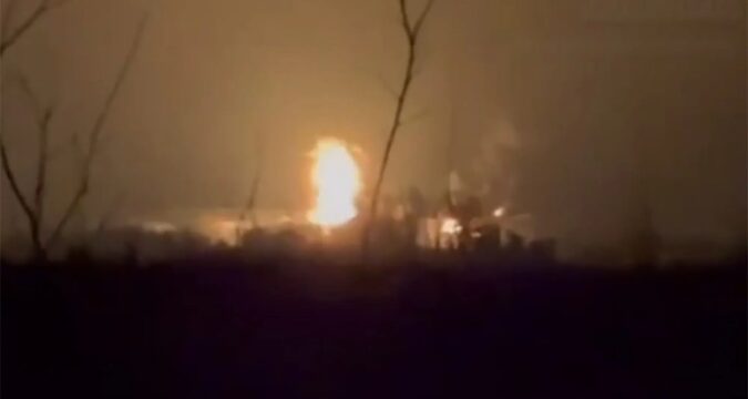 Alexander Gusev, Putin’s regional governor, said: “The territory of three districts of Voronezh Region was attacked by more than 10 UAVs – most of them hit an oil depot in the Liskinsky district.”