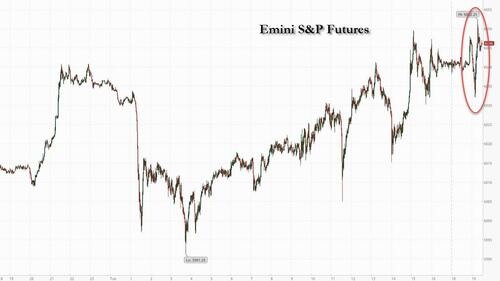 Spoos were trading at 6,040, before jerking higher, lower, and at last check trading unchanged from where they closed the regular session.